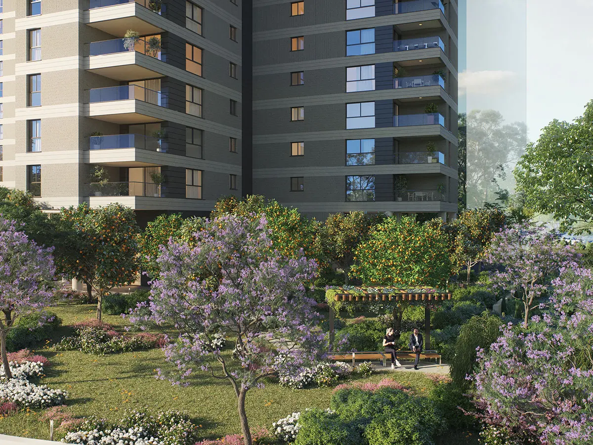 מבט לשני בניינים בסמיכות לפארק